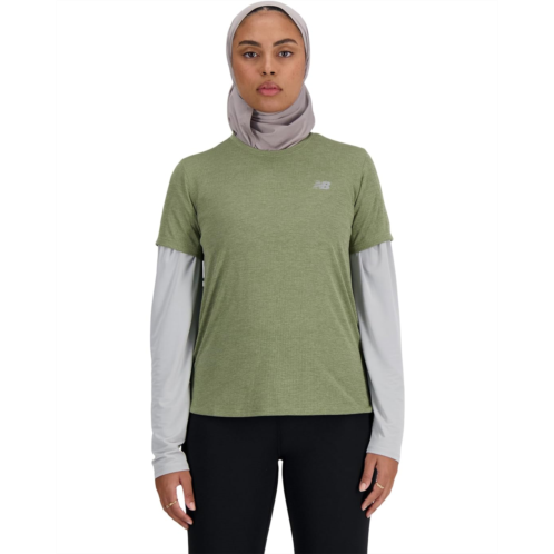 Behold the zenith of environmentally-conscious sportswear: the New Balance Women's Athletics T-Shirt Heather. Crafted for the environmentally conscious athlete, this breathable masterpiece features NB ICEx technology for rapid cooling. Reflective logo for visibility, short sleeves, crew neck, and the iconic brand emblem on the chest.