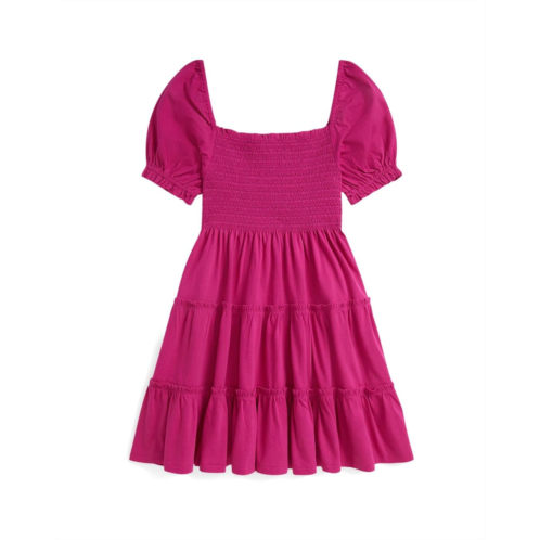 - Sunshine chic: A sweet smocked dress for every adventure! Polo Ralph Lauren Kids Smocked Cotton Jersey Dress! Designed for breezy comfort and timeless style, this adorable dress features a soft cotton jersey construction that feels gentle against the skin. The smocked bodice offers a snug yet flexible fit, while the square neckline and ruffle trim add a touch of playful elegance. With its short sleeves, knee-length silhouette, and easy pull-on design, it's perfect for warm-weather outings, family picnics, and sunny-day strolls.
