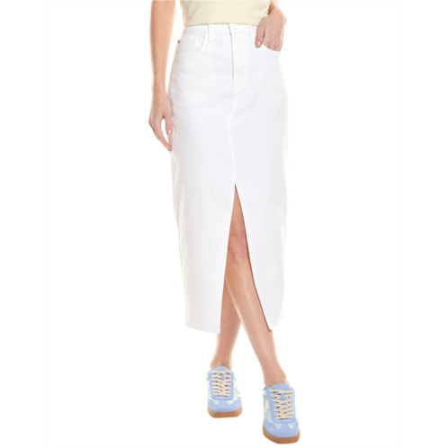 Introducing the HUDSON Jeans Midi Skirt, a stylish addition to your wardrobe that combines denim with a rebellious edge. This midi skirt in white features belt loops and and is wearing a size 27. Please note that measurements may vary slightly by size. The skirt features a zip fly with button closure and is made of 99% cotton and 1% elastane. Easy to care for, simply machine wash and enjoy this imported piece. Elevate your outfit with the HUDSON Jeans Midi Skirt today!