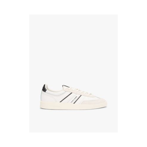 Tommy Hilfiger men's sneaker. Merging retro-inspired details with a streamlined silhouette, these sneakers feature a mix of suede and smooth leather panels. This skater style is finished with fine-cleated soles for improved traction and support with every step. Part of our Tommy Jeans collection.