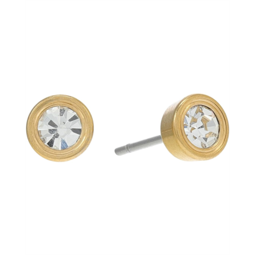 - Define your chic style with the addition of dainty details and wearing Kate Spade New York Small Studs. The pair features brass metal construction with stainless steel finish and glass stone as well as cubic zirconia adornments.