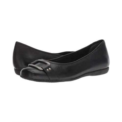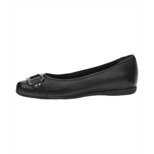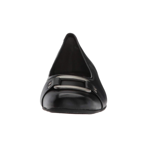- Smooth leather or suede upper pops with a decorative metal accent at the toe.