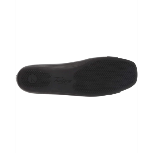- Cushioned polyurethane footbed with stitchless embossed design is covered in a soft, leather-like fabric.