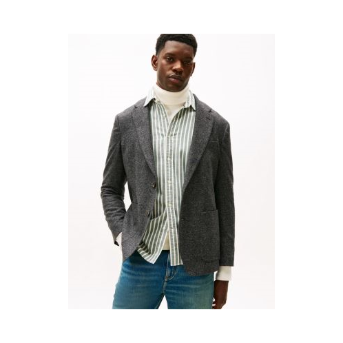 Tommy Hilfiger men's blazer. Made from a wool and silk blend sourced from a famed Italian mill, this classic blazer adds an elevated note to your cool-weather wardrobe. The stretch Donegal weave features its trademark flecks of color while the partial lining allows you to layer in comfort.