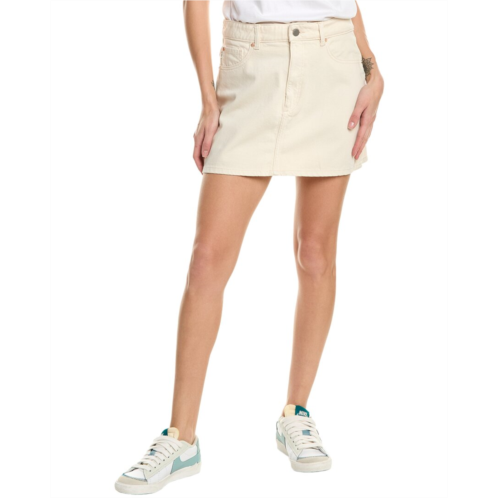 Introducing the DL1961 Alma Mini Skirt, a timeless addition to your wardrobe. This versatile skirt features a classic five-pocket styling with faux front pockets and belt loops for added style. Crafted from 100% sustainably-made denim, this skirt is not only stylish but also environmentally friendly. The ecru color adds a touch of sophistication to any outfit, and the zip fly with button closure ensures a secure fit. Whether dressed up or down, the Alma Mini Skirt is the perfect choice for any occasion. Machine washable and imported, this skirt is a must-have for any fashion-forward woman. Available in sizes ranging from 24 to 32.