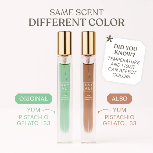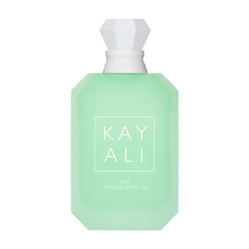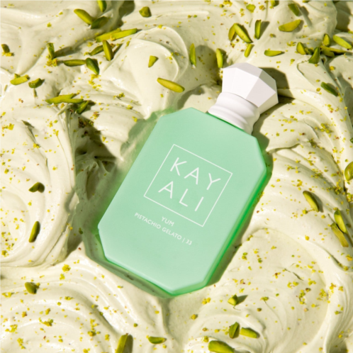 About the Bottle: KAYALI's signature diamond-shaped bottles and opulent jeweled caps are inspired by Traditional Middle Eastern Oud bottles, this time featured as a playful, pastel green, frosted glass, topped with a matte white jewel cap for Yum Pistachio Gelato | 33 EDP Intense. The number 33 indicates the 33 rounds of formulations it took to achieve the perfect balance of warmth wrapped in sweetness.