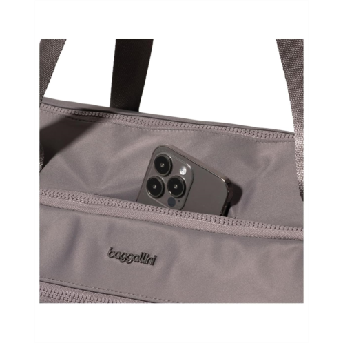 - Made with weekend getaways in mind, this multi-compartment Baggallini Park Ave Weekender tote bag comes complete with a separate bottom section perfect for packing away shoes or laundry. An RFID-protected passport pocket and luggage handle sleeve ensure this tote is just as useful as a travel bag, too. And with a detachable and adjustable crossbody strap, you can easily customize your fit. The bag features two shoulder straps, a zipper closure, a padded laptop pocket, two internal compartments, and ten pockets in total to keep your essentials safely stored and organized.