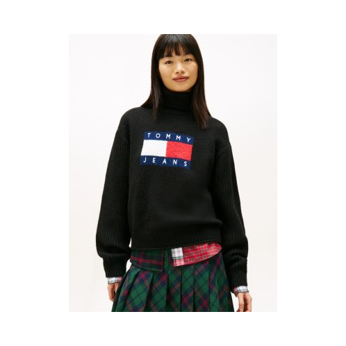 Tommy Hilfiger women's sweater. Make a statement this season in this turtleneck featuring our bold flag logo on the chest. Soft and warm with a hint of wool, this sweater is finished with ribbed sleeves and trim for subtle texture. Part of our Tommy Jeans collection.