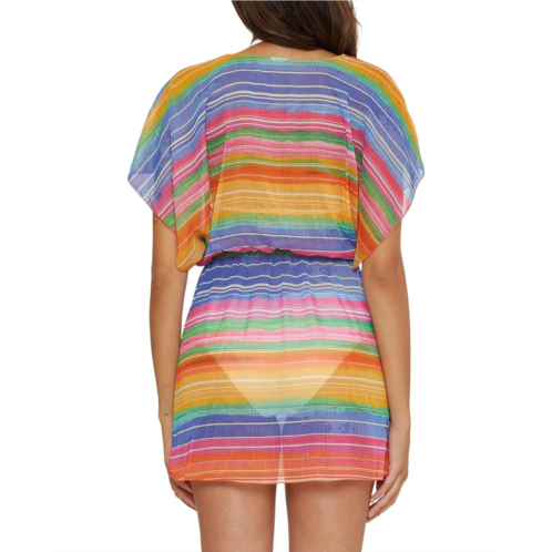 Redefine beach glamor in your colorful look wearing the BECCA by Rebecca Virtue Shoreline Chiffon Tunic. The pull-on dress features a plunge V-neckline with short flared sleeves and removable natural rope belt with multicolored tassels.