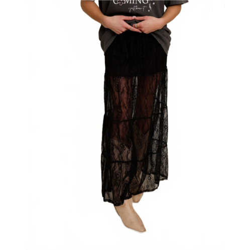 [US] Mimosa patti lace maxi skirt in black