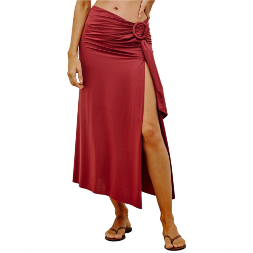 Introducing the ViX Solid Alana Midi Skirt, a luxurious addition to your wardrobe from the renowned brand ViX. This stunning cranberry-colored skirt features a sleek and chic slip-on styling, perfect for any occasion. Made from a blend of 75% Polyamide and 25% Elastane, this skirt is both comfortable and figure-flattering. Simply hand wash and wear - imported for your convenience. Elevate your style with the ViX Solid Alana Midi Skirt today!