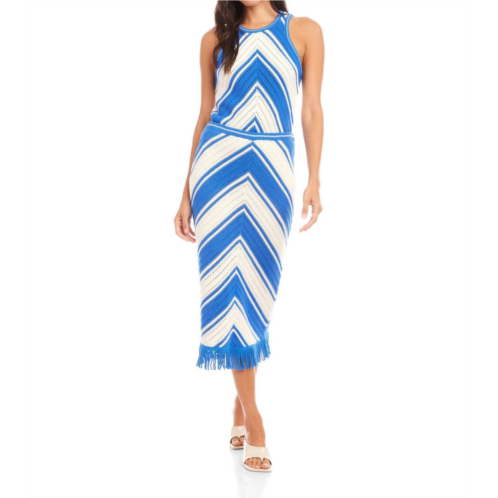 Tuck your favorite tee into this midi length skirt for an effortlessly cool look.Introducing the Amber Crochet Skirt by Fifteen Twenty, a captivating blend of chic style and effortless elegance. This blue, patterned midi skirt is designed with a pencil silhouette and showcases a striking crochet chevron pattern. It features a form-fitting design, partially lined for comfort, and offers the convenience of a pull-on closure. Ideal for vacation settings or summer outings, this skirt pairs perfectly with the Alice Crochet Tank for a cohesive spring ensemble.
