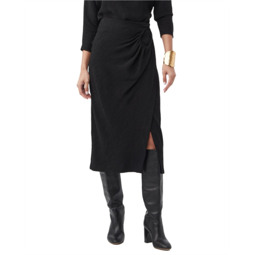 Introducing the Trina Turk Abiba Skirt, a stylish and versatile addition to your wardrobe. This contemporary and colorful piece draws inspiration from California's multicultural mix. The Abiba Skirt in black features a wrap style with an asymmetrical tie detail at the waist, giving it a unique and elegant look. With a midi length of approximately 33 inches from waist to hem, this skirt is perfect for any occasion. The back zipper makes it easy to put on and take off, while the 89% viscose and 11% nylon fabric blend ensures comfort and durability. Hand wash or dry clean for best results. Made in the USA, this Trina Turk skirt is a must-have for the fashion-forward woman.