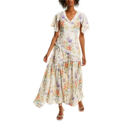 Introducing the Beulah Lacy Maxi Dress, a stunning addition to your wardrobe from the empowering brand, Beulah. This elegant dress in ivory features a V-neck, split butterfly sleeve, lace accents, self-tie at the neck, and a ruffle hem for a feminine touch. With a center back zipper for easy wear, this dress is made of 65% cotton and 35% polyester for a comfortable fit. Machine wash cold for easy care. Perfect for any occasion, this lacy maxi dress is approximately 53 inches from shoulder to hem and is available in sizes small to large. Elevate your style with the Beulah Lacy Maxi Dress.