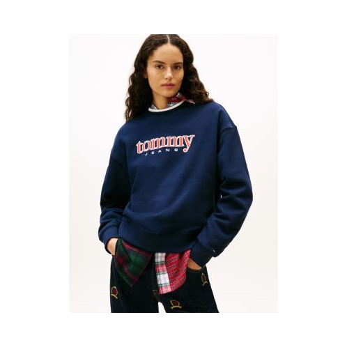 Tommy Hilfiger women's sweatshirt. This cozy sweatshirt with an applique logo is designed in a loose, boxy fit. Made from tech fleece for breathability and ease of movement, it's ideal for busy, casual days. Part of our Tommy Jeans collection.