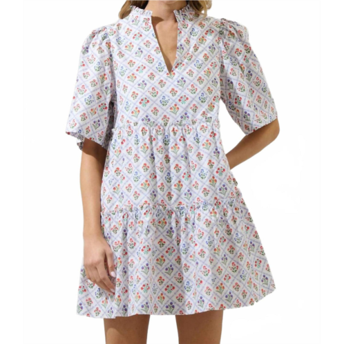 [US] SUGARLIPS lara floral dixie split neck shift dress in white multi