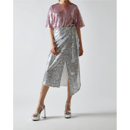 [US] GLAMOROUS sequin wrap midi skirt in silver