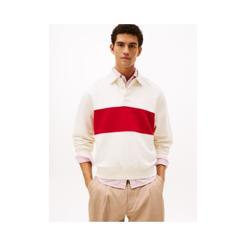 Tommy Hilfiger men's sweatshirt. Our pullover merges the sporty feel of a rugby with the laid-back appeal of a sweatshirt. Cut in a relaxed fit, this versatile layer is finished in a colorblock design.