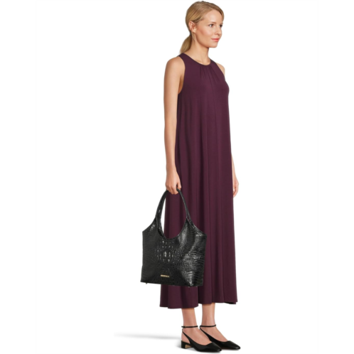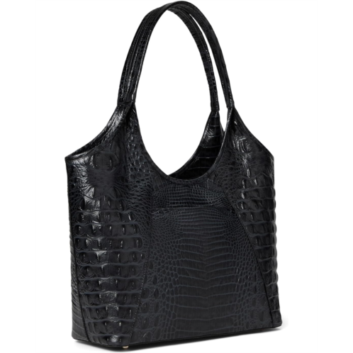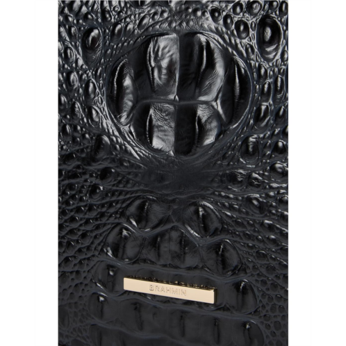 - Brahmin Melora is a slightly smaller iteration of our ultra-chic Iona tote. Melora has all the features we love in Iona - the vintage-inspired feminine silhouette, easy key clip closure, and convenient back slide-in pocket all make this an easy go-to for every day. The smaller silhouette is still spacious and slightly more compact for lightweight ease. Crafted from leather material, the bag has a zippered pocket and two flat handles.