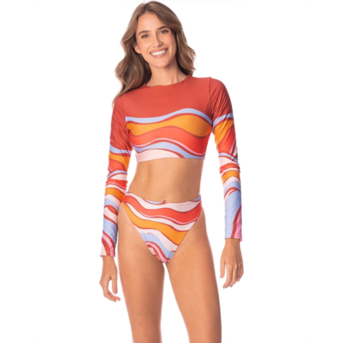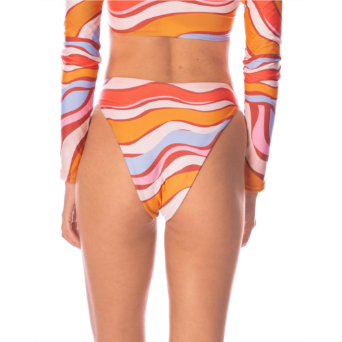 Effortlessly dazzle in vibrant hues wearing the Maaji Swizzle Blossom Yuki Bikini Bottoms. The pull-on bottomwear features a high-rise waist and high-leg silhouette with colorful wavy print pattern designed allover.