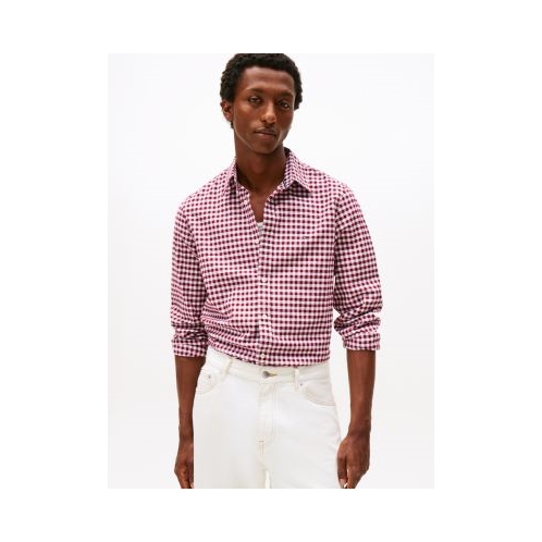 Tommy Hilfiger men's shirt. Embrace classic, easy-going style with this slim-fit Oxford shirt, made from soft cotton with added stretch and finished in a gingham print.
