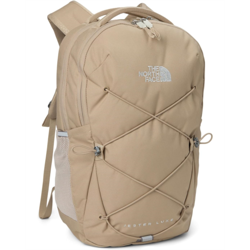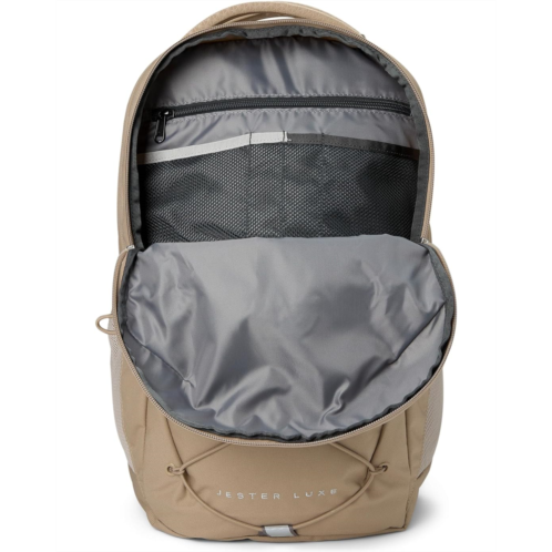 - Featuring a FlexVent suspension system that is certified by the American Chiropractic Association, The North Face Jester Luxe backpack is the perfect choice for your outdoor travels and vacations. The zippered front compartment of the bag features secure-zip pockets, a key hook, and tablet sleeve for easy organization. This carry-on backpack comes with padded back panel and breathable lumbar panel for long-lasting comfort. The injection-molded shoulder straps make it easy to carry around while the sturdy base makes it stand on its own. For added functionality, it also comes with a sternum strap, 360-degree reflectivity, and bungee system on the front. Pack your stuff with ease with this large backpack.