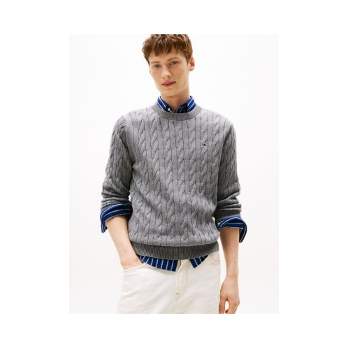 Tommy Hilfiger men's sweater. A timeless piece for your new-season wardrobe the cable knit crewneck sweater made from soft cotton and ready for layering.