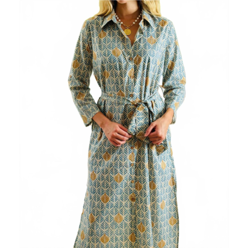 Just add slides or mules and you are good to go.Introducing the Dar Long Sleeve Midi Dress by Just Darviny, a perfect blend of style and comfort for any holiday occasion. This womenswear piece in Colony Blue features long sleeves and a length and a stylish button closure running full length for versatile styling. Care instructions include a cold delicate wash and line drying to maintain its quality.