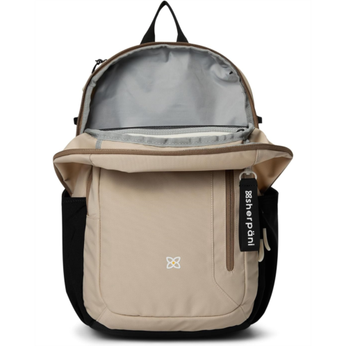 - The Sherpani Getaway is your ultimate travel sidekick - whether you're city hopping or hiking remote trails, this lightweight backpack is built for all-day comfort and effortless organization. Crafted with durable nylon and a soft recycled polyester lining, it features a front compartment, main compartment, padded laptop sleeve, and a hidden zippered top pocket for stashing valuables. Dual water bottle pockets keep hydration handy, while the front vertical zippered pocket with a secure zipper lock offers extra peace of mind. A Sherpani key chain adds a personal touch, and the adjustable sternum strap ensures a snug fit on the move. Smartly designed to fit under airplane seats, this bag is the perfect personal item or minimalist pick.