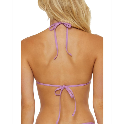 Get ready to dive in the water by wearing the BECCA Network Cheryl Metallic Mesh Triangle Top. The elegant bikini top has removable cups, gold and silver metallic fabric, and back & neck tie closure for a custom fit. The bikini top has a standard fit silhouette that makes it a must-have in your beachwear collection.