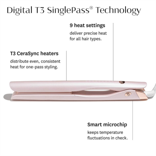 - Digital T3 SinglePass Technology delivers two times faster heat-up and perfect heat precision for fast, one-pass styling