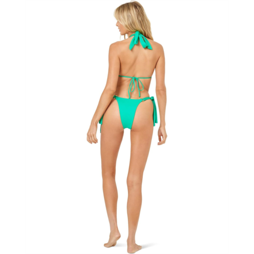 A must-have for your beach vacations and pool parties, the L*Space Brielle Top is fully lined for better coverage. This bikini top comes with thick straps with metal D-ring details that offer support. The adjustable tie closure at the back ensures easy on and off. This sleeveless bikini top features an elongated triangle cup design for a stylish appeal. Flaunt your great style and curves wearing this chic top.