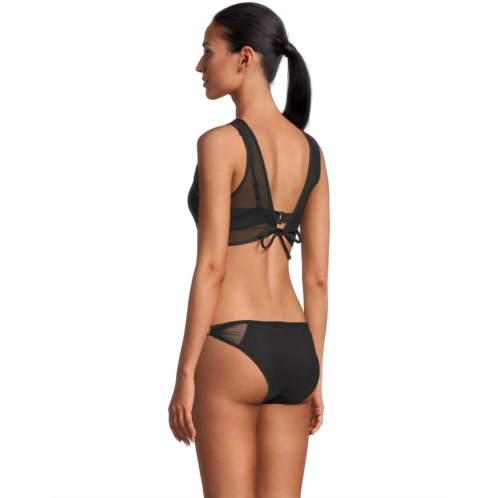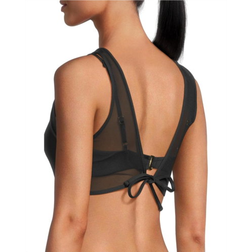 Take a dive into the water in full confidence and style wearing BECCA Muse Ariadne Multi Way Bralette. The standard-fit bralette features sheer stretch mesh fabrication, two adjustable straps, and a hook-and-eye closure on the back. The top can be worn as mesh high neck or tie front or as bralette without mesh overlay.