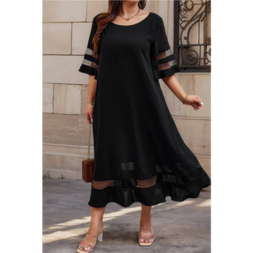 [US] TRUEDAMES plus size mesh splicing round neck long dress