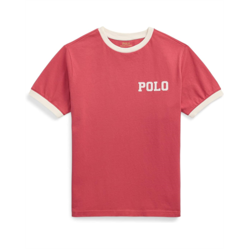 - Washed for added softness, this Cotton Jersey Ringer Tee by Polo Ralph Lauren Kids features our logo rendered in felt appliques as well as contrasting trim for a playful Polo look. Designed with a contrasting crewneck and short sleeves with ribbed armbands, it brings a fun, sporty twist to a classic silhouette.