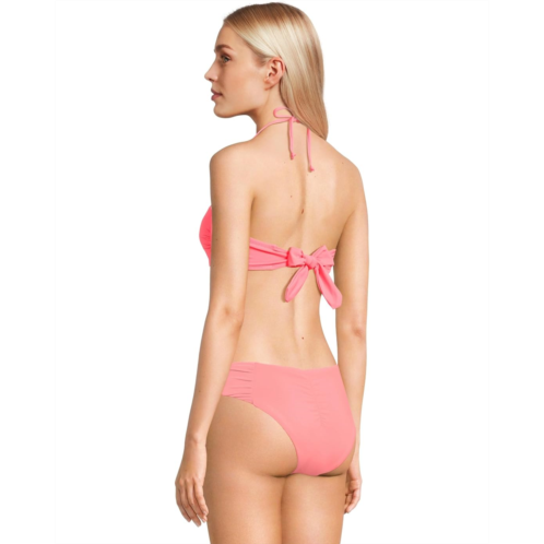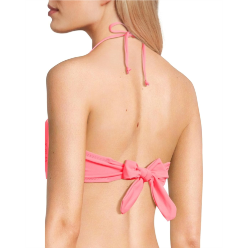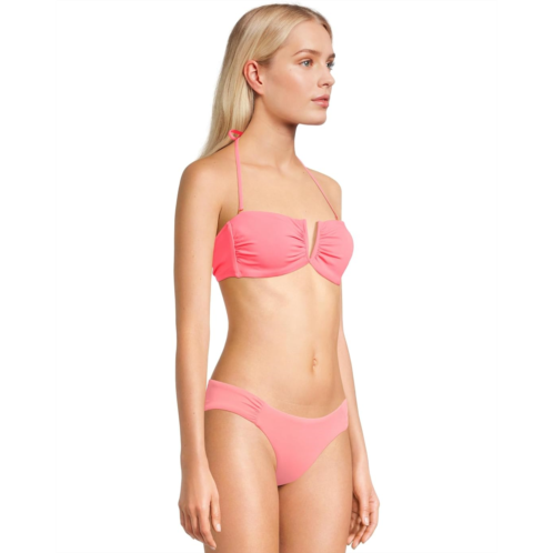 Stun everyone with your beachwear look wearing BECCA Color Code Brinley V Wire Bandeau Top. The bandeau top features a V wire center front, sewn in molded cups, side seam stays, and an adjustable removable tie neck strap.