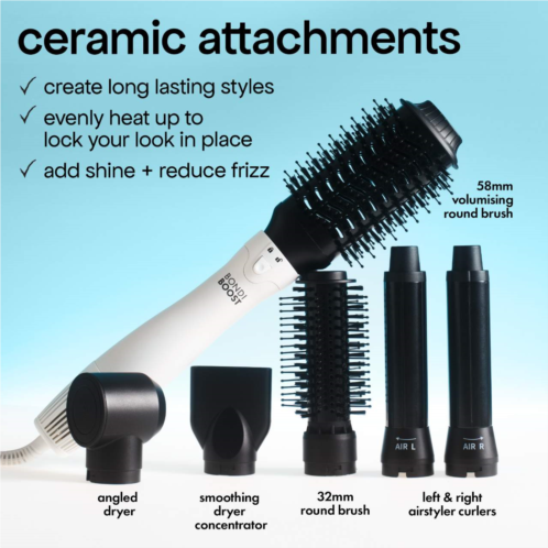 What it is:A multi-styler to style while you dry with six ceramic attachments to dry, curl, wave, and smooth with everlasting hold.
