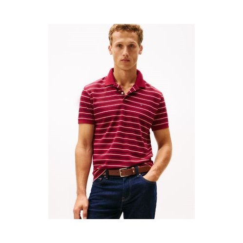 Tommy Hilfiger men's polo. A fresh spin on tradition, our Smooth Cotton Polo is made from a double-knit interlock weave. This dense, two-sided fabric combines durability with a silky, soft feel. A stripe print distinguishes this version from an everyday solid hue.