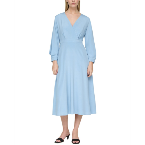 [US] Lafayette 148 New York lantern sleeve surplice silk-blend dress