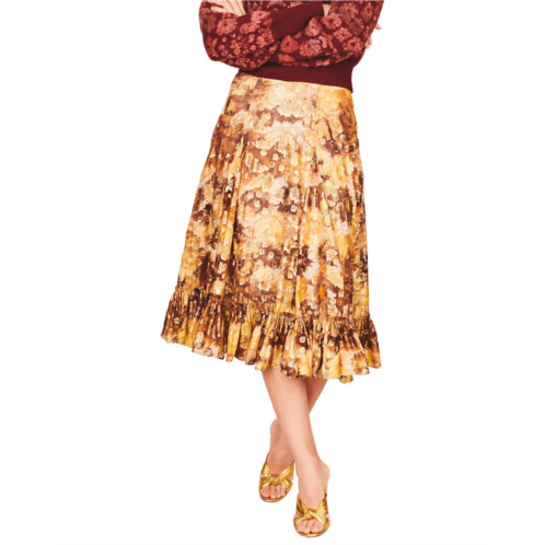 Introducing the LoveShackFancy Normandie Night Shin Lil Skirt, a charming addition to your wardrobe from the beloved brand known for embracing romance and feminity since 2013. This skirt features vintage-inspired details with whimsical fabrics, intricate lace, and soft floral prints. The Normandie Night Shin Lil Skirt in Sun Shower is approximately 31 inches from the waist to the hem and includes a zipper closure for easy wear. Crafted from 75% viscose and 25% metallic, with a 100% polyester lining, this skirt should be dry cleaned only. Imported for your convenience, this skirt is a must-have for any fashion-forward woman looking to add a touch of whimsy to her wardrobe.