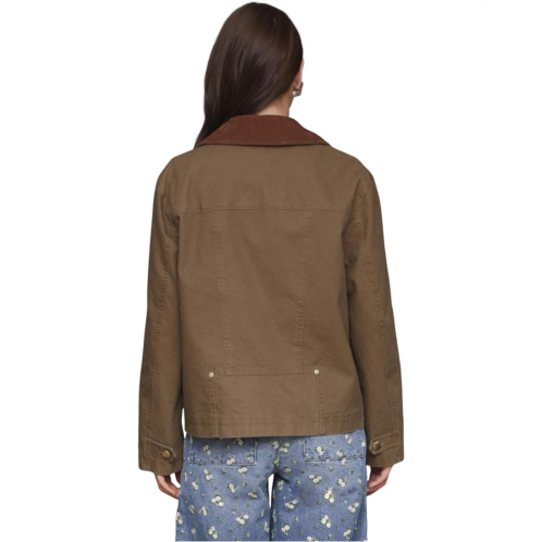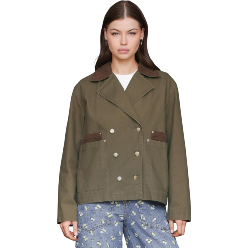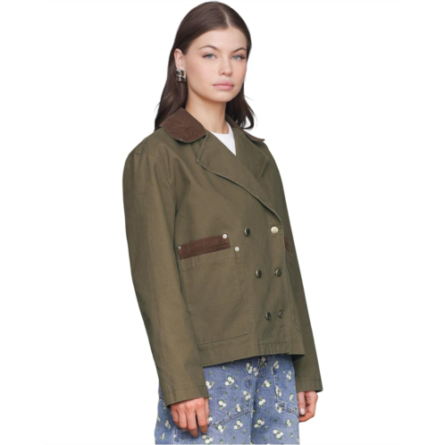 The Avec Les Filles Double Breasted Peacoat takes an earthy, terrestrial turn in a boxy cut from heavyweight cotton twill trimmed with a corduroy collar and pockets within pockets. Made from cotton, this nautical-classic peacoat is styled with long sleeves, a snap-button front closure, and a straight hem. Lined with printed cotton, this button-down coat is ideal for styling and layering.