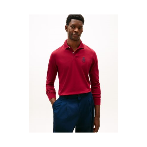 Tommy Hilfiger men's polo. A fresh spin on tradition, our long-sleeve polo is made from a double-knit interlock weave. This dense, two-sided fabric combines durability with a silky-soft feel. An embroidered crest logo adds an elevated touch.