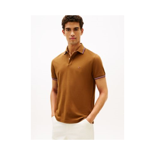 Tommy Hilfiger men's polo. A fresh spin on tradition, this regular-fit polo is made from quick-dry, wicking fabric with ultraviolet protection and features our signature stripe tipping at the cuffs and collar.