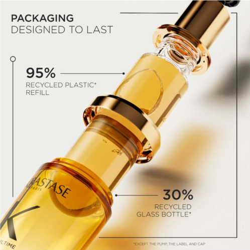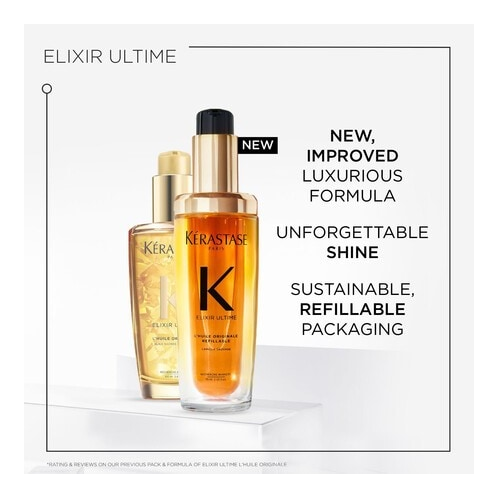 The new iconic hair oil is now refillable. The bottle is made of least 30% recycled glass**** and the refill is made of at least 95% recycled plastic.***