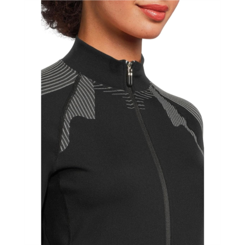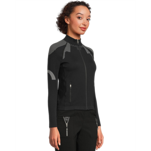 The Jamie Sadock Lightweight Full Zip Sweater Jacket is a sleek and comfy full-zip jacket that serves as an excellent lightweight layering piece for on and off the course. Its soft, stretchy fabric offers comfort and warmth, while the zippered front closure ensures ease of use. The lightweight performance material with stretch delivers a better range of movement. This zip-up jacket is styled with long sleeves, a collared neckline, and a straight hem.