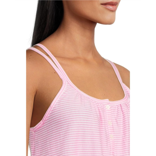 - Hit the sheets in cool comfort with the LAUREN Ralph Lauren Knit Double Strap Button Neck Gown. This cotton nightgown is crafted with a double scoop neckline, double tankkorea straps, three-button front placket, embroidered logo at the front left chest and features an allover thin stripe pattern giving it a delicate finish.