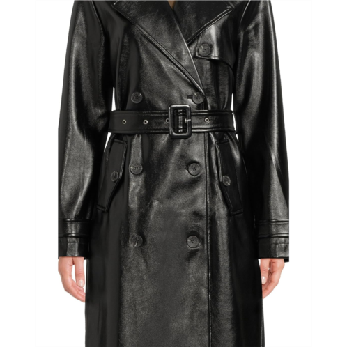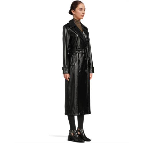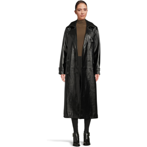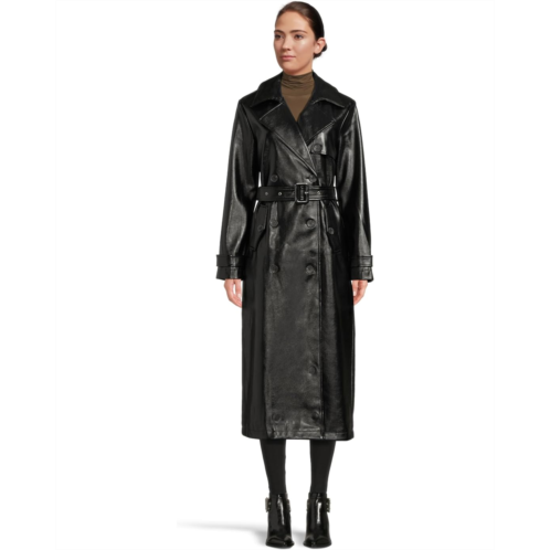 Show off your refined taste in fashion wearing the Avec Les Filles Double Breasted Maxi Trench Coat. This faux leather trench features a double-breasted closure at the front, buckle belt, and sharp notched lapels. This classic silhouette and glazed finish along with a below-the-knee silhouette will elevate any look.