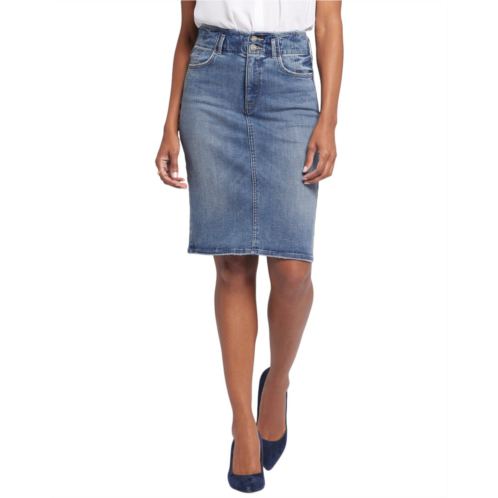 Elevate your wardrobe with the NYDJ High Rise Skirt. This figure-flattering skirt in Rockie style is designed to take you anywhere you need to go. The high waistband sits perfectly on the nipped-in waist, creating a polished and defined look. With NYDJ's signature Lift Tuck Technology, you'll enjoy the right amount of support for a smooth and flawless figure thanks to the innovative slimming panel with a patented crisscross design. The skirt runs large and measures approximately 22.75 inches from waist to hem. It features a zip fly and double button closure for easy wear. Made from a comfortable blend of 65% cotton, 22% polyester, 11% viscose, and 2% elastane, this skirt is machine washable and imported for your convenience. Add this versatile skirt to your collection for a stylish and flattering look every time you wear it.