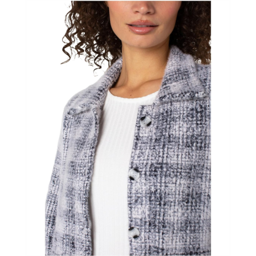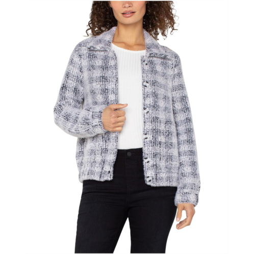 Style your cold weather look by layering the Liverpool Los Angeles Long Sleeve Collared Bomber Sweater Jacket. In a grey and white plaid, this button-front sweater jacket brings a cozy yet refined feel to everyday layering. It features a collared neck, long sleeves, and a straight hem. Toss it over a tee, layer it with denim, or style it with trousers for an easy-yet-elevated look-this is the layer that does all the work.
