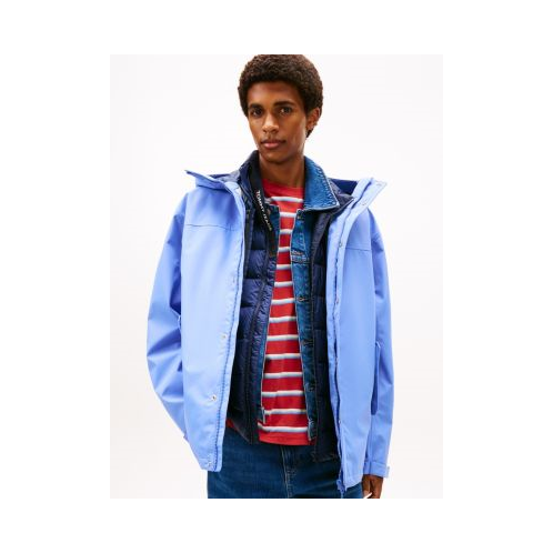 Tommy Hilfiger men's jacket. In celebration of our roots with a nod to the Windy City, we present the our 3-in-1 Chicago jacket. This tech design features a hooded windbreaker and a detachable quilted vest lining. Wear each piece separately or together for a comfortable cool-weather outer layer. Part of our Tommy Jeans collection.